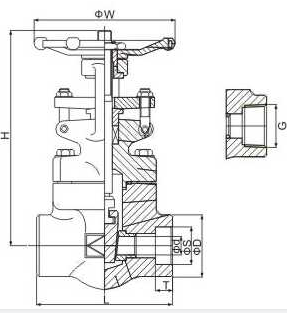 內螺紋承插焊鍛鋼閘閥流體阻力小,啟閉所需力矩小,可用于介質在環網管道的兩個方向流動,即介質的流動不受限制.全開時,工作介質對密封面的沖蝕比截止閥小。結構簡單,制造工藝好,結構長度短。