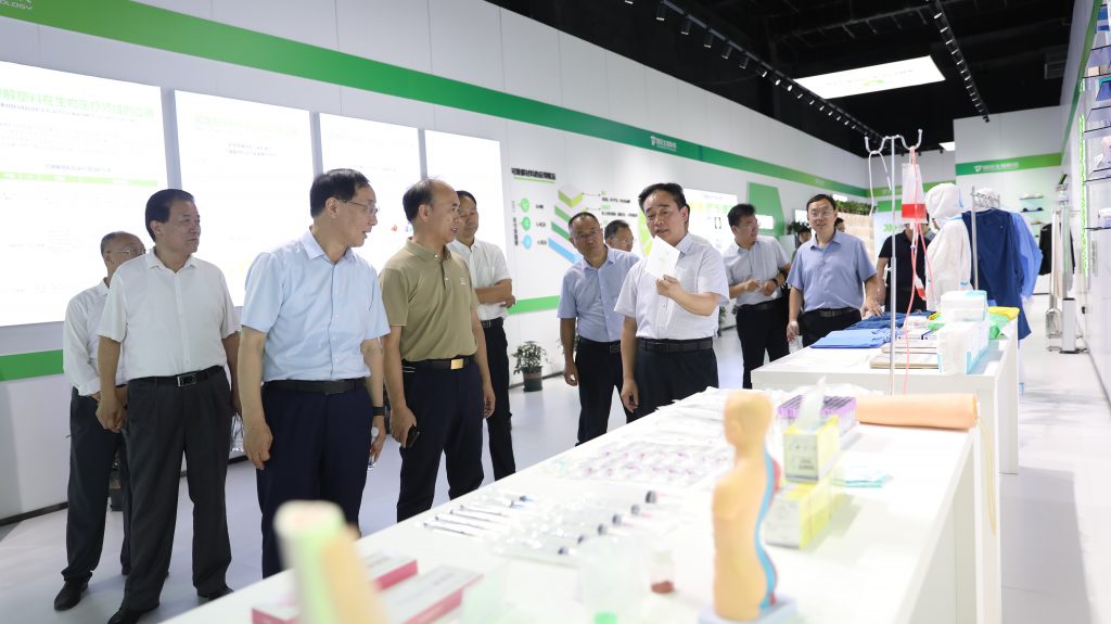 楚耀華主席一行參觀了特創(chuàng)生物的產(chǎn)品展廳及研發(fā)中心。展廳內(nèi),琳瑯滿目的生物基可降解制品令人目不暇接,從生物改性原料到豐富的制品系列,每一件展品都凝聚著特創(chuàng)生物團隊的智慧與汗水。在聽取了公司王總就特創(chuàng)生物的發(fā)展歷程、核心競爭力以及團隊建設等方面的情況匯報后,楚耀華主席對公司強大的企業(yè)規(guī)模、優(yōu)良的產(chǎn)品特性以及多元化的發(fā)展戰(zhàn)略給予了高度評價,并希望公司在保持自身經(jīng)濟效益增長的同時,繼續(xù)發(fā)揮產(chǎn)品技術(shù)優(yōu)勢,加大研發(fā)投入,提升企業(yè)競爭力,為推動綠色經(jīng)濟、循環(huán)經(jīng)濟和可持續(xù)發(fā)展貢獻更多力量,努力成為行業(yè)標桿與典范。